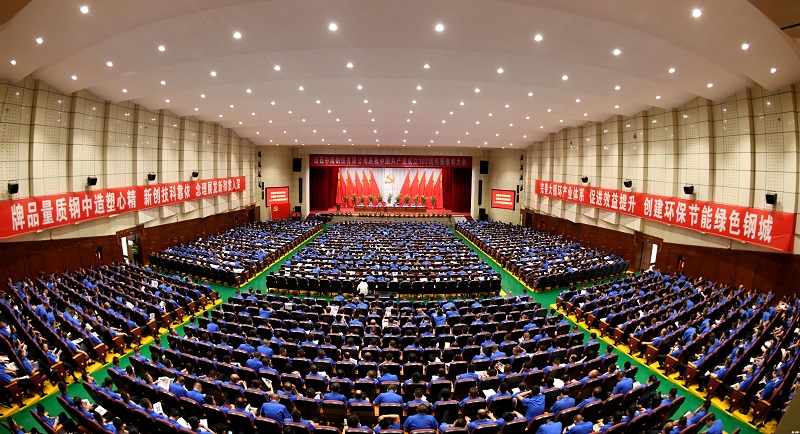 5月1日上午9时,中阳钢铁2023年五·一技改创新表彰大会在铿锵有力的国际歌声中拉开序幕。